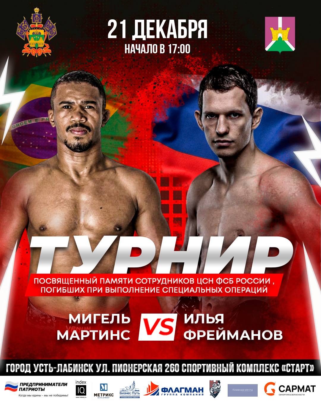 На турнире, посвященном памяти сотрудников ЦСН ФСБ России, погибших при выполнении специальных операций, в главном поединке вечера сойдутся: